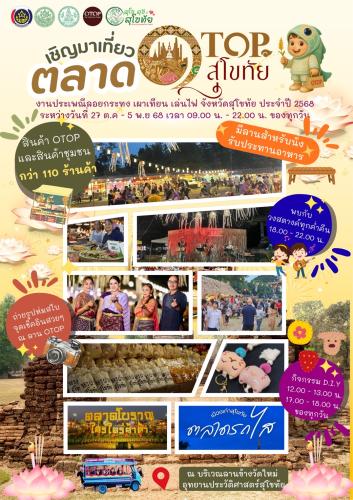 🎇ขอเชิญชวนประชาชน และทุกภาคส่วน เที่ยวงานประเพณี ลอยกระทง เผาเทียน เล่นไฟ จังหวัดสุโขทัย ประจำปี 2568 ณ ลาน OTOP สุโขทัย (บริเวณลานข้างวัดใหม่) ณ อุทยานประวัติศาสตร์สุโขทัย ระหว่างวันที่ 27 ตุลาคม - 5 พฤศจิกายน 2568