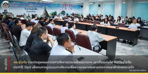 พช.สุโขทัย ร่วมประชุมคณะกรรมการจัดงานประเพณีลอยกระทง เผาเทียนเล่นไฟ จังหวัดสุโขทัย ประจำปี 2568 เพื่อทบทวนรูปแบบการจัดงานเพื่อความเหมาะสมตามประกาศของสำนักพระราชวัง