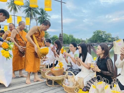 💠โดยพิธีจะเริ่มขึ้นตั้งแต่ช่วงเช้า พระสงฆ์ให้ศีล เจริญพระพุทธมนต์ และรับบิณฑบาตข้าวสารอาหารแห้งที่บริเวณสะพานบุญ วัดตระพังทอง ถือว่าเป็นกิจกรรมที่สื่อถึงความเป็นสุโขทัยอย่างแท้จริง