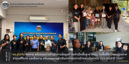 พช.สุโขทัย ติดตาม สนับสนุนการดำเนินงาน โครงการการบริหารการจัดเก็บและใช้ประโยชน์ ข้อมูลความจำเป็นพื้นฐาน (จปฐ.) ในพื้นที่อำเภอกงไกรลาศ อำเภอคีรีมาศ และติดตามการดำเนินงานโครงการบ้านห่วงใยจากใจ GLO ประจำปี 2569