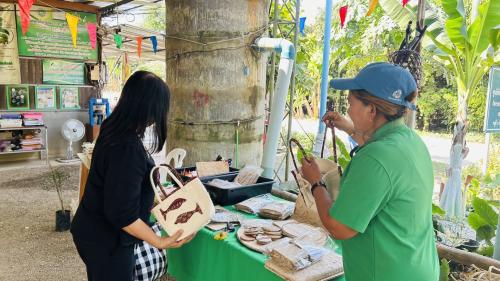 ณ กลุ่มวิสาหกิจชุมชนใบตองคลองกระจง อำเภอสวรรคโลก จังหวัดสุโขทัย