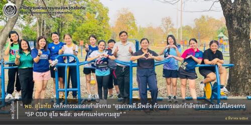 พช. สุโขทัย จัดกิจกรรมออกกำลังกาย "สุขภาพดี มีพลัง ด้วยการออกกำลังกาย” ภายใต้โครงการ "5P CDD สุโข พลัส: องค์กรแห่งความสุข"